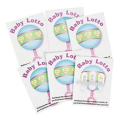 Add some laughter and fun to your baby shower with our Baby Shower Pickle Cards! Ask your guests to pull back the tabs on baby's rattle. If they find three bottles in a row, they win! Perfect for drawings, raffles, games, door prizes, and more.