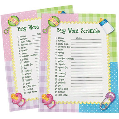 Our Baby Word Scramble Game is the perfect activity for your Baby Shower. Test your guests' knowledge and have them unscramble these newborn-related words and phrases. Get everyone in on the fun with our Baby Word Scramble Game.