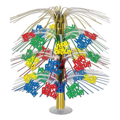 Celebrate the next birthday with some style and place our Happy Birthday Cascade Centerpiece at your party table. It has a solid base with colorful "Happy Birthday" phrases shooting from it.