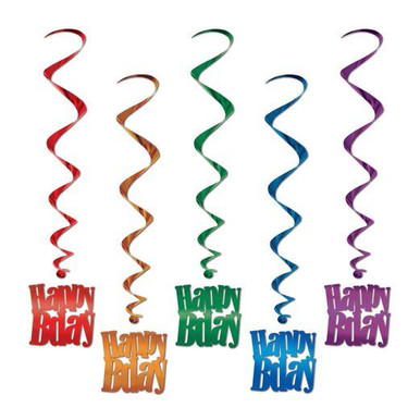 Brighten your birthday party by hanging these dazzling and colorful metallic Happy Birthday Whirls from the ceiling at your party.