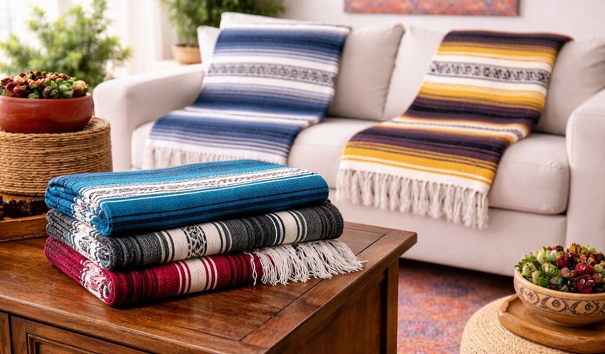 Today, the Mexican falsa blanket has evolved far beyond its original uses while still honoring its cultural roots. One of the most popular modern uses is as a decorative throw. Draped over a sofa, chair, or bed, it instantly adds color, texture, and a warm, inviting feel to any space. Its vibrant striped patterns pair beautifully with both rustic and contemporary décor styles.
