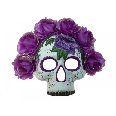 Is purple your favorite color? Amols’ DOD Mask Purple Flowers is the perfect Day of the Dead Mask. This white mask has fun designs on the front and gorgeous purple flowers on the forehead. This mask will get many compliments from friends or passing strangers.