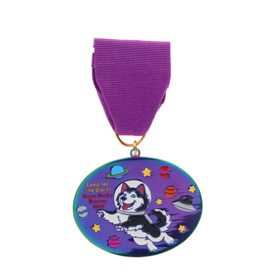 We love the 2026 edition of the Texas Husky Rescue Fiesta Medal! The theme of this medal is "Leap for the Stars" and features a fun-loving husky astronaut soaring through the galaxy.