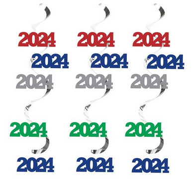 Set the scene for celebration with our 2024 Assorted Dizzy Danglers! Featuring fun and brightly colored 2023 cutouts, our dizzy danglers are a great way to honor your grad! Hang easily above doorways, mantels, and much more!
