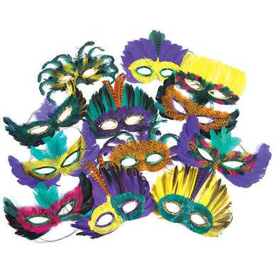 Make planning your Mardi Gras party a snap with our Mardi Gras Feather Mask Assortment. This mask is sold in a variety of designs and styles in traditional Mardi Gras colors.