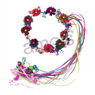Our Cornhusk Flower Crown is a beautiful version of our popular paper flower crown. The flowers are made out of dyed cornhusks that are shaped by hand and attached to a ribbon tail. It's a great party favor to hand out to your guests for Cinco de Mayo celebrations and Fiesta parties. You can also use it as a small wreath to decorate your event.