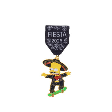 Add some mischief to your collection with the El Barto Fiesta Medal! This hilarious design features Bart in a mariachi suit cruising on his skateboard, blending Fiesta flair with playful attitude. Finished with a sleek black ribbon drape reading “Fiesta 2026,” it’s a fun and eye-catching collectible you won’t want to miss.