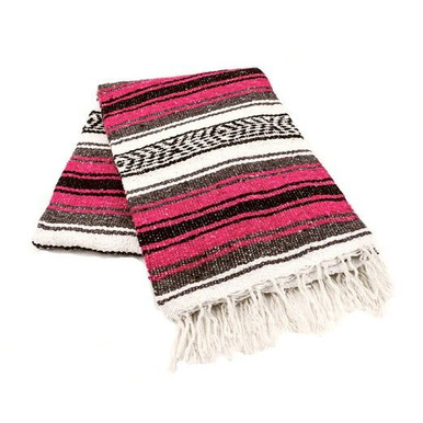 Our Hot Pink Mexican Blanket is a wonderful decoration for your Fiesta or Cinco de Mayo party. Drape this authentic Mexican blanket over party tables or use it to decorate your home. This blanket is also extremely popular to use as a yoga mat or a picnic blanket. They also make affordable and wonderful gifts.