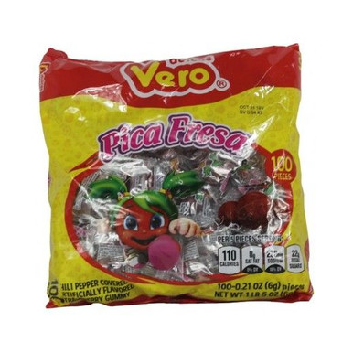 Pica Fresa is a strawberry flavored gummy candy that has a thin coat of mild chili powder to start off with a spicy kick. It then softens into a sweet strawberry flavor. The combination of spicy and sweet is outstanding and everyone will love these treats.