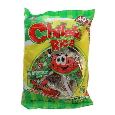 INGREDIENTS: SUGAR, CORN SYRUP, CITRIC ACID, GUAJILLO CHILI, IODIZED SALT, ARTIFICIAL WATERMELON FLAVOR, ARTIFICIAL COLORS (FD&C RED 40, FD&C YELLOW 5, FD&C BLUE 1), TITANIUM DIOXIDE, SOY LECITHIN.