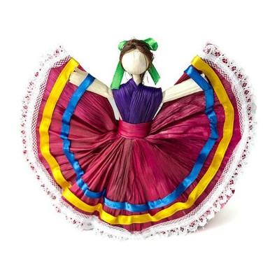 Our small cornhusk Folklorico Dancer Doll is hand-dyed and crafted in Mexico by experienced artisans. This is an authentic decoration for a Fiesta party and is also a great collectible item. This is a great addition to a party table centerpiece as well as a fantastic party favor to hand out to your guests.