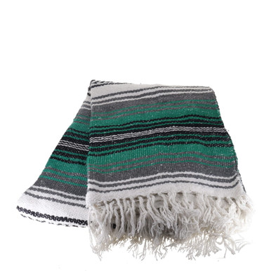 Our Teal Mexican Blanket is a wonderful decoration for your Fiesta or Cinco de Mayo party. Drape this authentic Mexican blanket over party tables or use it to decorate your home. This blanket is also extremely popular to use as a yoga mat or a picnic blanket. They also make affordable and wonderful gifts.