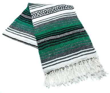Our Teal Mexican Blanket is a wonderful decoration for your Fiesta or Cinco de Mayo party. Drape this authentic Mexican blanket over party tables or use it to decorate your home. This blanket is also extremely popular to use as a yoga mat or a picnic blanket. They also make affordable and wonderful gifts.