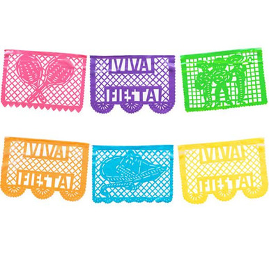 Our "Viva Fiesta" Neon Plastic Picado is the perfect touch for any Fiesta or Cinco de Mayo celebration. This vibrant banner features hand-cut, Mexican-inspired designs on each panel, making it a fun and authentic decoration for your event. Hang up our "Viva Fiesta" Neon Plastic Picado indoors or outside for an effortlessly festive look.