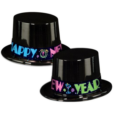Ring in the New Year in style with this fun and stylish Neon New Year Top Hat. This top hat is a colorful and economical New Year's Eve party favor that will inspire your guests to put a little extra effort into "Auld Lang Syne" when midnight strikes.