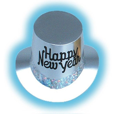 Top off your New Years party right with the Silver Glitz New Year Top Hat. This is a bright and shiny hat that will make your New Years celebration fun and festive. The hat has a sparkly holographic silver band and "Happy New Year" detail. This item makes a great affordable party favor and decoration.