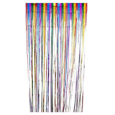 Our Metallic Rainbow Fringe Curtain adds a shimmering accent to any doorway or wall. This fringe curtain is the perfect backdrop for any performance stage or photo shoot. Hang them in doorways to create a fun entrance at your party. This makes a great addition to any colorful themed party or event.