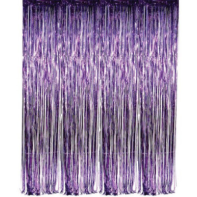 Our Purple Metallic Fringe Curtain adds a shimmering accent to any doorway or wall. This fringe curtain is the perfect backdrop for any performance stage or theater. This curtain is a great accessory for your Mardi Gras celebration, New Year's Eve party, or any other event.
