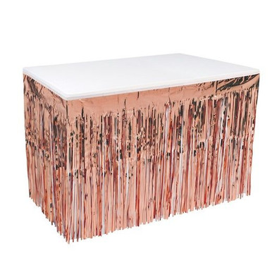 Add a sparkle to your celebration with our Rose Gold Metallic Table Skirting. This table skirt is great way to dress up a table for a wedding reception, anniversary celebration, or any other party and event.