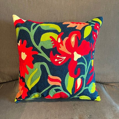 Fall in love with our Floral Embroidered Pillow. This gorgeous pillow features an embroidered flower on the pillow with colorful designs. This pillow will be an attention grabber. Make sure to pair it with our other embroidered pillows.