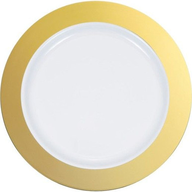 These elegant Gold Rim 9" Plastic Plates are perfect for any party or gathering. These are great for appetizers, desserts, and all sized meals.